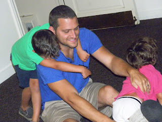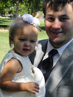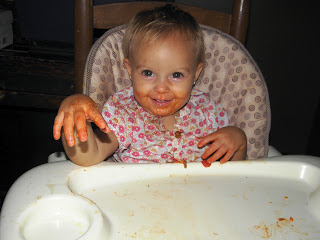 So what she gets food all over her hands, hair, & face. I'll give her a bath.